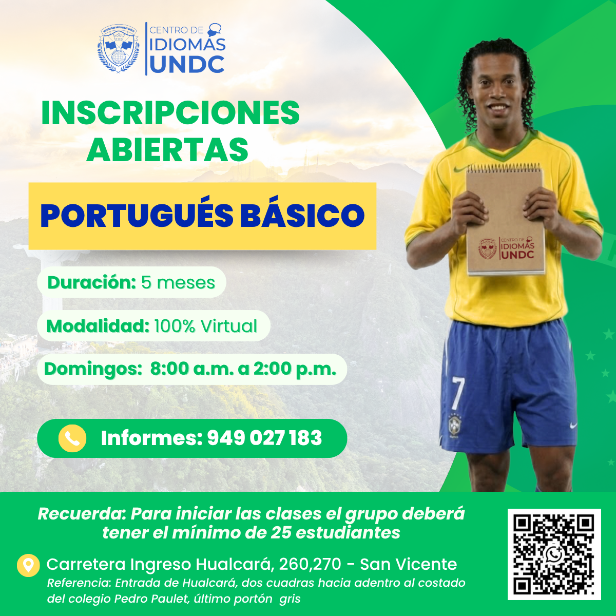 El inicio de clases está sujeto a contar con un mínimo de 25 estudiantes con pago verificado de matrícula y primera mensualidad.